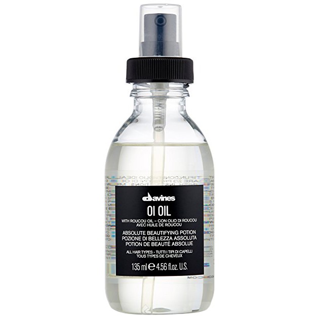 Produsul Davines Oi OIL este o combinaţie de uleiuri sintetice, dezvoltate în laboratoarele companiei (din păcate, acestea sunt comedogenice) şi uleiul exotic natural Roucou, susţinut de acţiunea uleiului de Floarea Soarelui. Acest preparat de înfrumuseţare vizează hidratarea imediată a părului. Uleiurile sintetice oferă strălucire şi îmbunătăţesc condiţia părului. În plus, uleiurile protejează structura internă a părului, prevenind deteriorarea viitoare a părului. Uleiurile naturale, datorită acţiunii de penetrare, ajung în profunzimea firului de păr, unde astupă toate cavităţile.